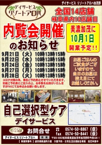 新着情報 内覧会開催のお知らせ 2021.08.31 10月1日に開業予定のデイサービスリゾートアロハ加茂野の内覧会についてお知らせいたします。 アロハ可児、広見、多治見に続く直営4号店として、 美濃加茂市加茂野町今泉563-1にオープン致します。 つきましては9月21日(火)より内覧会を開催いたします。 内覧会は新型コロナウイルスの感染防止のために少人数・予約制にて行いますので、 ご予約、施設へのお問合せについて本HPのお問合せよりお願い致します。 Category: Author:aloha /index.php/blog/blog_comments/captcha /index.php/blog/blog_comments/get_token ≪ 9月オンライン説明会の予定 10月オンライン説明会の予定 ≫